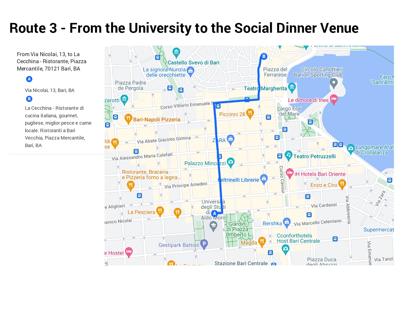 Il Ristorante è raggiungibile a piedi in circa 15 minuti dalla sede del Convegno